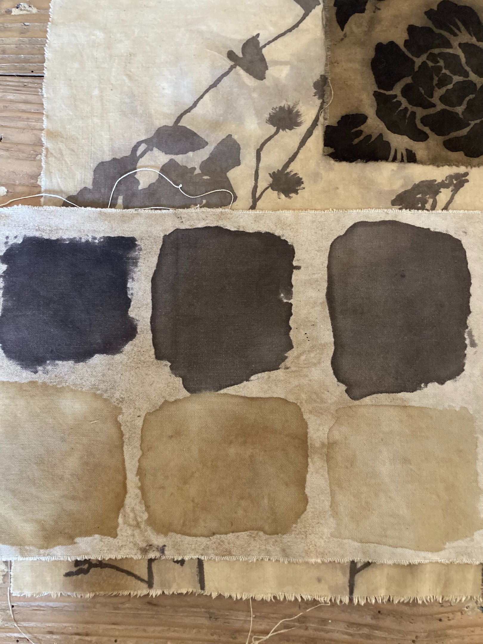S'il est possible de faire du motif en teinture végétale avec des techniques comme l'écoprint ou le shibori, pour ce que je voulais faire, l'usage des pâtes et notamment des pâtes à mordant était l'approche la plus pertinente.