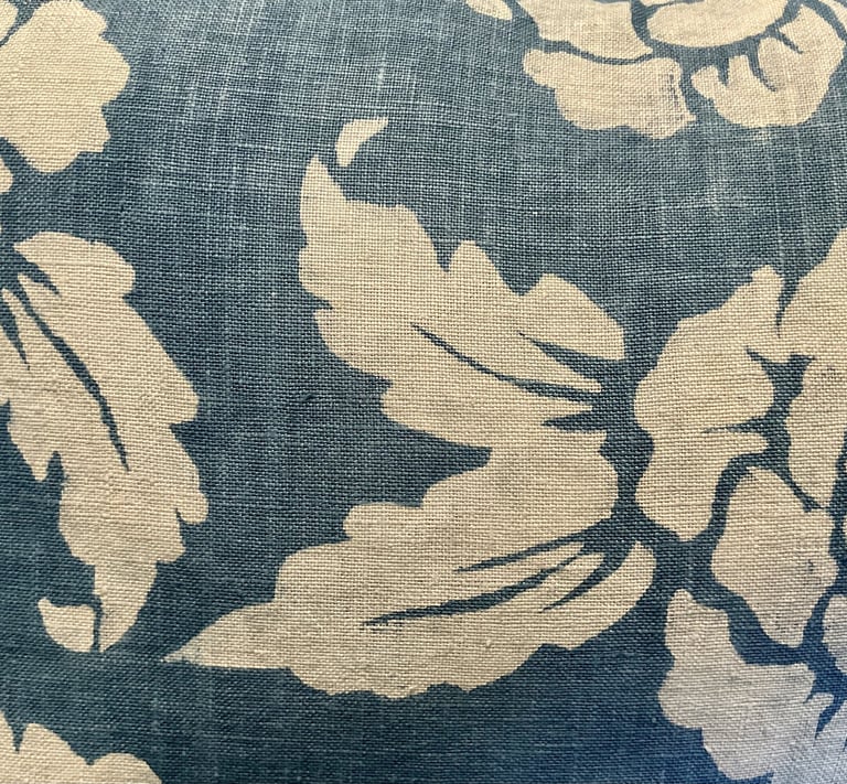 La plupart des teintures se font à chaud sauf une, l'indigo ! Là on peut donc utiliser une pâte de réserve faite sur une base d'argile afin que le colorant vienne se fixer partout sauf à cet endroit là. On peut ainsi créer un motif de fleurs blanches sur un tissu teint en bleu.